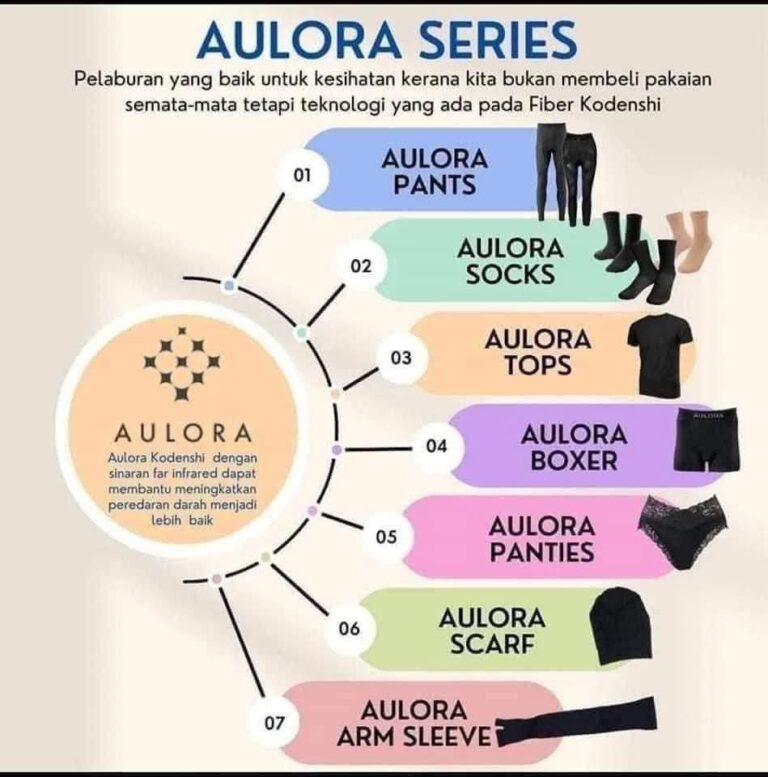 Seluar Kesihatan Aulora dengan teknologi Jepun KODENSHI merupakan satu kaedah ikhtiar sihat moden secara terapi senyap yang bantu ramai orang bebas sakit, kembali aktif serta bertenaga secara semulajadi .